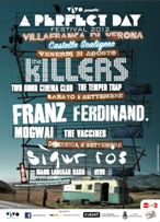 Un Festival dalle caratteristiche europee con grandi band come The Killers, Franz Ferdinand e Sigur Ros, protagoniste assolute della kermesse che avrà luogo per tre giornate nello splendido Castello Scaligero di Villafranca di Verona dal 31 agosto al 2 settembre e che saranno trasmesse in diretta su Radio2 Rai, media partner della manifestazione. Ecco in dettaglio la presentazione del cartellone con le band: