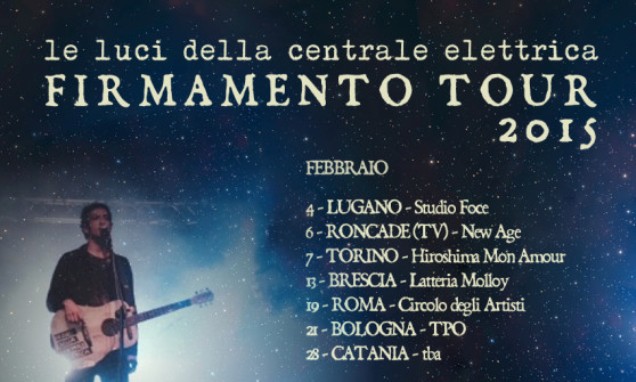 Le Luci Della Centrale Elettrica di nuovo dal vivo nel 2015 con il “Firmamento Tour”, che prenderà il via dallo Studio Foce di Lugano il 4 febbraio per concludersi al Magnolia di Milano il 26 marzo: in mezzo altri dodici concerti che toccheranno tutta la penisola, da Trieste alla Sicilia. Il “FIRMAMENTO TOUR” 2015, che arriva dopo i cinquanta concerti del “Costellazioni Tour” e dopo il tour acustico “Costellazioni a sud” (sette concerti in programma dall’8 al 15 dicembre e già tutti sold-out in prevendita) si preannuncia come qualcosa di assolutamente inedito da un punto di vista dell’atmosfera musicale che si respirerà. «I live del Firmamento Tour saranno concerti elettronici ma suonati con le braccia». – racconta Vasco Brondi - «Un concerto disco-punk. Elettrico ed elettronico. Sarà uno spettacolo che tirerà fuori il lato più ritmico e distorto di Costellazioni e degli altri dischi, un lato che è rimasto fino ad ora inesplorato, quell'idea di ballare sotto i bombardamenti.» Anche la band sarà inedita: sul palco con Vasco Brondi ci saranno infatti Federico Dragogna (I Ministri) alla chitarra elettrica, Matteo Bennici al basso elettrico e Paolo Mongardi (ZEUS!) alla batteria.