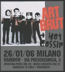 Gli Art Brut sono il fiore all’occhiello della scena Art Rock con base a New Cross, South London (da dove tra l’altro provengono tali Bloc Party…), da circa un anno “il posto dove essere” a Londra per ascoltare prima di altri la musica che sarà. Grazie al lavoro di un’etichetta (la Angular Recording) che nella scorsa stagione ha sapientemente lanciato il fenomeno grazie a due compilation (su cui hanno fatto capolino anche le attuali star Bloc Party) a New Cross è fiorito quello che è stato soprannominato l’Art Rock Do It Yourself (oltre agli Art Brut ci sono The Violets, The Long Blondes, Luxembourg ecc…). Ma veniamo agli Art Brut. Dopo due singoli decisamente aggressivi, il secondo dei quali ha segnato l’inizio del sodalizio con la Fierce Panda, la band è arrivata a “Bang Rock And Roll”. Il nome della band deriva da una definizione del pittore Jean Dubuffet, coniata sul finire della Seconda Guerra mondiale, atta a identificare quelle opere d’arte create senza alcuna intenzione artistica o estetica, nate solamente in risposta a un bisogno, ad una pulsione creativa. Questo il principio guida del quintetto capeggiato da Eddie Argos, che con il suo cantato/parlato vagamente Mark E Smith, fa il possibile per tenere lontani melodia, pretese artistiche e Pop (“Emily Kane” e “Moving to LA” sono le uniche concessioni) dal suono degli Art Brut, quattro giovani in “balia” del loro frontman. Fiumi di parole e pensieri autobiografici sovrastano la musica degli Art Brut. Un’occhiata ai testi della band possono rendere l’idea dell’Argos-pensiero: musica e critica musicale nell’hit “Formed A Band” (this is my singing voice, it’s not irony, it’s not Rock & Roll, we’re just talking, to the Kids) e in “Bad Weekend” (Haven’t read the NME in so long, don’t know what genre we belong), gioventù anglosassone in “My Little Brother” (“my little brother just discovered rock n roll, there’s a noise in his head and he is out of control…he is only 22 and he is out of control”) ed infine amore/frustrazioni sessuali tra le righe di "Emily Kane" (“I was your boyfriend when we were 15, it’s the happiest that I’ve ever been. Even though we didn’t understand how to do much more than just hold hands”) e “Good Weekend” (First time I saw her, I wanted more than just to hold her), ”Rusted Guns of Milan” (It doesn’t mean that I don’t love you, one more try with me above you. It’s got nothing to do with anything I’ve had to drink). E’ nelle liriche del suo leader, già soprannominato il nuovo Jarvis Cocker, quindi, il punto di forza degli Art Brut, traendo spunto dalle sonorità Post Punk di fine anni ’70, così come dal Punk (pensate ai seminali Buzzcocks o ascoltate il retrogusto Clash – dei quali live suonano una cover di “I Fought The Law”- di “My Little Brother”). Il risultato? Mezz’ora di musica, esplosiva come una bomba, anzi, come dodici proiettili che vanno tutti a segno: bang! bang!