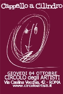 GIOVEDI´ 04 OTTOBRE a ROMA @ @ CIRCOLO degli ARTISTI Via Casilina Vecchia, 42 INGRESSO: 5,00 € Infoline: 06/70305684; info@circoloartisti.it