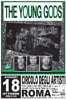 18 ottobre a Roma @ Circolo Degli Artisti INGRESSO CONCERTO YOUNG GODS: 18 euro + d.p. PREVENDITE CIRCUITO TICKETONE e GREENTICKET dalle 23:30 INGRESSO GIANNI MUSIC: 5 euro