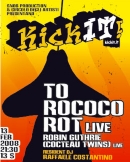 A Roma i To Ricoco Rot saranno supportati dal leggendario Robin Guthrie. Gli scozzesi Cocteau Twins, i maggiori esponenti della mitica etichetta 4AD, furono i maestri assoluti di quel dream-pop che ha fatto sognare un´intera generazione, cresciuta negli anni ´80. Robin Guthrie ed Elizabeth Fraser rielaborarono le tensioni post-punk e dark-rock della cosiddetta "new wave" tingendole di pop etereo, onirico e visionario, dando vita ad album memorabili come Head Over Heels e Treasure. La generazione successiva, quella degli anni ´90, li ricorderà, poi, anche per essere stati i principali ispiratori del genere shoegaze (vedi Galaxy 500), che da loro prese lo stile intimista e decadente e la tecnica della saturazione di effetti, loops e riverberi. Guthrie ha proseguito la sua ricerca sonora spingendosi verso i raffinati ambiti delle soundtracks strumentali e landscapes elettronici.