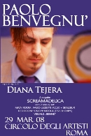 sabato 29 marzo a ROMA @ Circolo degli Artisti (+ Diana Tejera) Infoline: 06/70305684; info@circoloartisti.it INGRESSO: 8 euro Dalle 23:30 l´ingresso è di 5 euro per SCREAMADELICA, in collaborazione con RADIO CITTA´ FUTURA, con 2 sale dj set con Fabio Luzietti, Skalibur e Lino & Nicola di Fish´n Chips e visuals di Bennet Pimpinella
