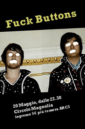 Dopo aver conquistato il pubblico dell’All Tomorrow’s Parties lo scorso dicembre (l’edizione curata dai Portishead per intenderci), con una delle performance in assoluto più gratificanti dell’intera manifestazione, i due Fuck Buttons dal cartellone dell’ATP sono passati alle scuderie dell’omonima label raccogliendo i frutti di una fervida attività underground svolta negli anni recenti. La band di Andrew Hung e Benjamin John Power è partita sposando le ‘credenziali’ di alcuni dei più influenti artisti noise d‘oltreoceano – due nomi su tutti: Black Dice e Wolf Eyes - per poi utilizzare il rumore ai fini di un sound più strutturato. Il noise diviene dunque un tramite attraverso il quale esprimere inedite caratteristiche. L’approccio rimane analogico, con macchine d’epoca (vanno per la maggiore i Casio ed i microfoni giocattolo) e strumenti prontamente modificati, le textures si arricchiscono, si affacciano i primi segni di una ‘diversa’ ricerca melodica. Il nuovo album Street Horrrsing (Goodfellas) registrato da John Cummings dei Mogwai e masterizzato da Bob Weston degli Shellac, stupisce grazie al suo incedere macilento, al sound da dancefloor, alle evidenti filiazioni industriali e alle morbose vocals. Una rovinosa macchina live, una coppia destinata a sconvolgere le regole della nuova musica rumorista. Come già evidenziato dal singolo apripista Bright Tomorrow: una cadenzata techno spaziale ingarbugliata da loop elettronici, prossima ad essere risucchiata in un caotico vortice dove le macchine si sovrappongono alle ‘irriconoscibili’ voci. Un urlo primordiale che arriva direttamente dal futuro! I live del gruppo sono stati da più parti dipinti come vere e proprie epifanie, mutazioni transmediatiche che creano una fusione psico/fisica tra pubblico e band. Una nuova psichedelia a ben intendere, proprio perché elementi di drone music e minimalismo si affacciano ora prepotentemente nella musica del gruppo. Che nel frattempo si è fatto le ossa dal vivo con un altro grande del movimento neo-psych inglese – Alexander Tucker - e con un fratello di sangue (concettualmente parlando) come il canadese Caribou.