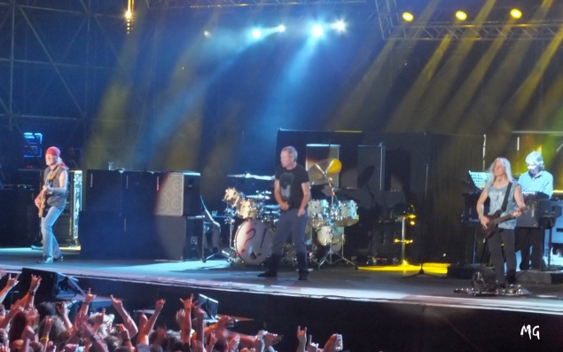 Sul palco ognuno ha avuto il suo momento “solo” nel quale Gillan si è sempre eclissato a volte anche uscendo proprio di scena, come a sottolineare di non voler più essere una presenza troppo ingombrante. Paice sempre il solito metronomo, un professionista che sa fare il suo lavoro, preciso (certo, l’assolo su The Mule è durato solo poco più di quattro minuti, ma ciò non toglie che è sempre un grande artista). Airey molto ispirato, si è divertito improvvisando un po’ di classica e addirittura un “arrivederci Roma” al piano. Steve Morse, quasi sempre capelli al vento per via del ventilatore ai suoi piedi, presente con le sue entrate e gli assoli (purtroppo su alcuni brani nel finale il riverbero è troppo e l’acustica è distorta). Glover una garanzia, sempre sorridente, sempre li e sempre pronto, dialoga con tutti nella band e anche col pubblico, incitandolo insieme a Gillan a partecipare. E il pubblico apprezza e risponde.