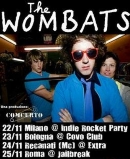 Forse è a causa dell’acqua che bevono, convenientemente filtrata dal lurido fiume Mersey, o magari è per via dell’aria che respirano, ancora impregnata dello spirito dei Fab Four, ma andare a vedere un concerto di un gruppo di Liverpool è sempre una festa. E vale per i Wombats, esordiente trio che nel Regno Unito sta diventando una delle success story dell’anno, quanto da noi affermato tempo fa in occasione della data romana dei loro concittadini Hot Club De Paris: vederne di gruppi che sanno dar vita a dei live show così vitali e trascinanti e con una simile naturalezza... Benché, certo, non si possa non riscontrare che il loro è puro entertainment postadolescenziale e nulla più: i Wombats non nutrono infatti nessuna ambizione di essere innovativi e/o originali, e si limitano a operare nel solco di una onorata tradizione che parte dalla goliardia dei Madness degli anni ’80 per arrivare al dinamico pop-sound angolare di band odierne quali Pigeon Detectives e Maximo Park. A fare la differenza in positivo rispetto ad altre band similari, ci sono le canzoni (almeno quattro magistrali) e la scanzonata immagine a tre dimensioni che proiettano. Matthew Murphy, il leader cantante (e talora tastierista) è una sorta di Bob Geldof giovane con meno ego e più autoironia: possiede talento (compositivo, vocale, ecc.) e il bello è che forse non sa di averne. Dan Haggis, il batterista, è l’estroverso del gruppo, quello che motteggia a tutto spiano. E’ il “bello” dei Wombats (almeno così parrebbe dalla reazione delle indie-girls) e, contemporaneamente, anche la vera anima cazzara della band. E poi c’è il token european, il bassista norvegese Tord Øverland-Knudsen dalla capigliatura farlocca, in teoria l’anello debole del trio con il suo campionario di mossette demodè da rocker alla MTV, ma che contenuto nella spensierata cornice dei Wombats fa anche lui la sua discreta figura. Il pubblico accorso al Jailbreak, bello folto e in massima parte under-21, è stato dapprima scaldato dagli autoctoni Montecarlo Fire epigoni dei newyorkesi Strokes, che hanno presentato l’EP autoprodotto “The Guilty Pleasures”. Nota di merito per il cantante - in possesso di una bella voce, calda e potente - e per la brevità del set (non più di una ventina di minuti): magari tutti i gruppi di supporto capissero che di regola dopo il quarto brano la platea (ciascuna platea) inizia a scalpitare nervosamente in attesa degli headliner! Preceduti da un demenziale nastro audio narrante lo “storico” primo incontro di Matt, Dan e Tord a mo’ di favoletta, i tre Wombats aprono i procedimenti impiccando platealmente la maxi-mascotte di peluche che li ha accompagnati per tutto il tour europeo di cui Roma è la tappa finale, un wombat appunto (che per chi non lo sapesse è un mammifero marsupiale di base in Australia che ad occhio pare un incrocio tra un maiale e un orsetto) che avendo esaurito il proprio compito di portafortuna penzolerà vistosamente dalle assi del palco per tutta la serata. L’apertura tocca a “Kill The Director” seguita a ruota da “Moving To New York”, uno dei pezzi forti dell’album d’esordio “A Guide To Love, Loss And Desperation”, melodicamente ineccepibile e con un improvviso stacco di batteria che cita “Boys Don’t Cry” dei Cure. Gli altri momenti che si incidono nella memoria sono quelli della ballad “Here Comes The Anxiety” e di “My First Wedding”: è solo agli inizi, Matthew Murphy, ma le canzoni sa scriverle eccome, e d’ora in poi potrà solo migliorare. Piacciono in particolare le sue liriche ironiche, surreali e mai banali: da storyteller di razza, insomma, nella tradizione tutta britannica dei Ray Davies, dei Billy Bragg e - per venire ai nostri giorni - degli Eddie Argos. L’ultimo brano della serata è l’immancabile “Let’s Dance To Joy Division”, la indie-disco-song del 2007, durante la quale si scatenano pogo e putiferio mentre Murphy con quanto rimane delle sue corde vocali intona “So let the love tear us apart/ I've found the cure for a broken heart / Let it tear us apart...” per un gioioso inno alla vita in cui prodigiosamente compaiono fianco a fianco le parole “Joy Division” e “We’re so happy”: il passato e – forse – il futuro dell’indie-rock britannico. Non vale neanche la pena che scendano dal palco, i Wombats, perché la folla reclama a gran voce il bis che prontamente arriva, “Backfire At The Disco”, altro singolo di grande successo e in assoluto il più leggerino e commerciale contenuto in “A Guide To Love, Loss And Desperation”.