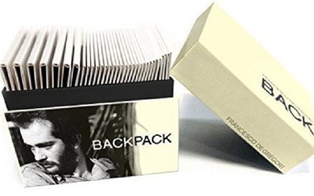 È uscito “Backpack” (Sony Music Italy), un box set con 32 album ufficiali, di studio e dal vivo, di Francesco De Gregori, rimasterizzati e riprodotti con le loro copertine originali. “Backpack” contiene anche un libro di 268 pagine che racconta la storia degli album con schede di Enrico Deregibus corredate da foto storiche ed inedite.