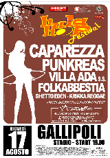 Cinque giorni di puro divertimento all'insegna della buona musica, immersi nel sole e nello splendido mare del Salento, in compagnia di ragazzi provenienti da tutta Italia e sommersi da fiumi di birra. Nasce l'Hula Hoop Festival, il nuovo evento dell'estate Salentina. L'idea è quella di continuare ed ampliare quello che è stato negli anni scorsi il Wave Rock Festival, ma questa nuova veste è importante per la crescita che stiamo realizzando. Una nuova realtà resa possibile dall'incontro con le istituzioni locali, con le altre agenzie e management del nostro territorio e con importanti realtà dell'intrattenimento e dell'imprenditoria. Tutto questo permette di realizzare quattro giorni di festival che vanno dal concerto live alla festa in spiaggia. L'appuntamento principale resta ovviamente quello del 17 Agosto , quando sul palco saliranno Caparezza, Punkreas, Folkabbestia e Villa Ada s.s. . Ma la festa non si ferma qui: grazie alla collaborazione col Cotriero live club il divertimento comincerà già la mattina con la Dance hall sulla spiaggia, dove alcuni dei migliori dj salentini si alterneranno fino all'apertura dei cancelli. Il divertimento proseguirà anche dopo il festival con l'after riservato a tutto il pubblico del concerto: un modo per aspettare l'alba sulla spiaggia con la partecipazione degli artisti esibitisi durante la serata. Sempre il Cotriero farà da sfondo con la sua suggestiva ambientazione alle serate dell'Hula Hoop Contest. Tra il 14 e il 16 Agosto infatti le migliori band emergenti si contenderanno la possibilità di partecipare alla serata conclusiva, oltre ad aggiudicarsi gli altri premi in palio (per maggiori info visita la sezione contest). L'Hula Hoop Festival inoltre è gemellato col Salento Indie Festival, nell'ambito del progetto Coast to Coast . Il Salento Indie Festival, si svolgerà il 19 Agosto presso il fossato del castello di Otranto e vedrà esibirsi alcune tra le migliori band indie italiane.(www.coolclub.it ). Programma 14-15-16 Agosto Selezioni Contest in serata presso Cotriero Live Club Elenco delle finaliste al Contest ( http://www.hulahoopfestival.com/bandiscritte.asp) 17 Agosto 2006 ore 18.00 presso STADIO "A. Bianco" di Gallipoli: Caparezza Punkreas Folkabbestia Villa Ada s.s. Ghetto Eden Krikka Reggae CESKO from Après La Classe e band vincitrice del Hula hoop contest