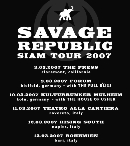 I Savage Republic presenteranno classici del loro repertorio e brani nuovi di zecca, tratti dall’imminente quinto disco, Siam, che uscirà ad ottobre su Neurot (Neurosis, Isis, Red Sparowes, Enablers) e di cui è già ora disponibile un EP, realizzato in edizione limitata, come da tradizione SR, in discfolio cartonato e pressato a mano dall'Independent Project Records di Bruce Licher. In questo tour ai membri storici Thom Fuhrmann, Ethan Port, Greg Grunk, si aggiungono lo straordinario batterista/percussionista Alan Waddington e la leggenda del punk-rock inglese Val Haller (Wayne County & the Electric Chairs, Lords of the New Church, Flying Lizards).