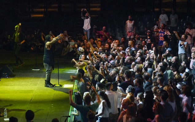 Gli sono bastati pochi minuti per incendiare la platea e per far alzare il pubblico dalle sedie. Sì perché lui li vuole lì, tutti intorno, a celebrare quello che è un rito, una vera festa. Dopo aver venduto milioni di copie dei suoi dischi e aver vinto due Grammy sia come migliore vocalist di R&B sia per un disco come 'Voodoo', uscito nel 2000, Michael Eugene Archer , da Richmond, Virginia, in arte D’Angelo aveva conosciuto un lungo periodo di crisi ed era sparito un po’ dalla scena musicale internazionale. Si temeva anche per la sua salute dato che dagli U.S.A. ci arrivavano notizie su di lui poco tranquillizzanti. L’anno scorso però - dopo quindici anni d’attesa - siamo stati testimoni del suo grande ed improvviso ritorno grazie ad un album davvero bello come 'Black Messiah' e questa sera ce lo ritroviamo dal vivo alla Cavea dell’Auditorium, per una delle sue due date italiane in tour con i suoi Vanguard, una sorta di supergruppo che vede al suo interno musicisti come Pino Palladino al basso, Jesse Johnson alla chitarra, Chris Dave alla batteria e last but not least Kendra Foster, grandissima vocalist nonché autrice di gran parte dei testi del nuovo album.